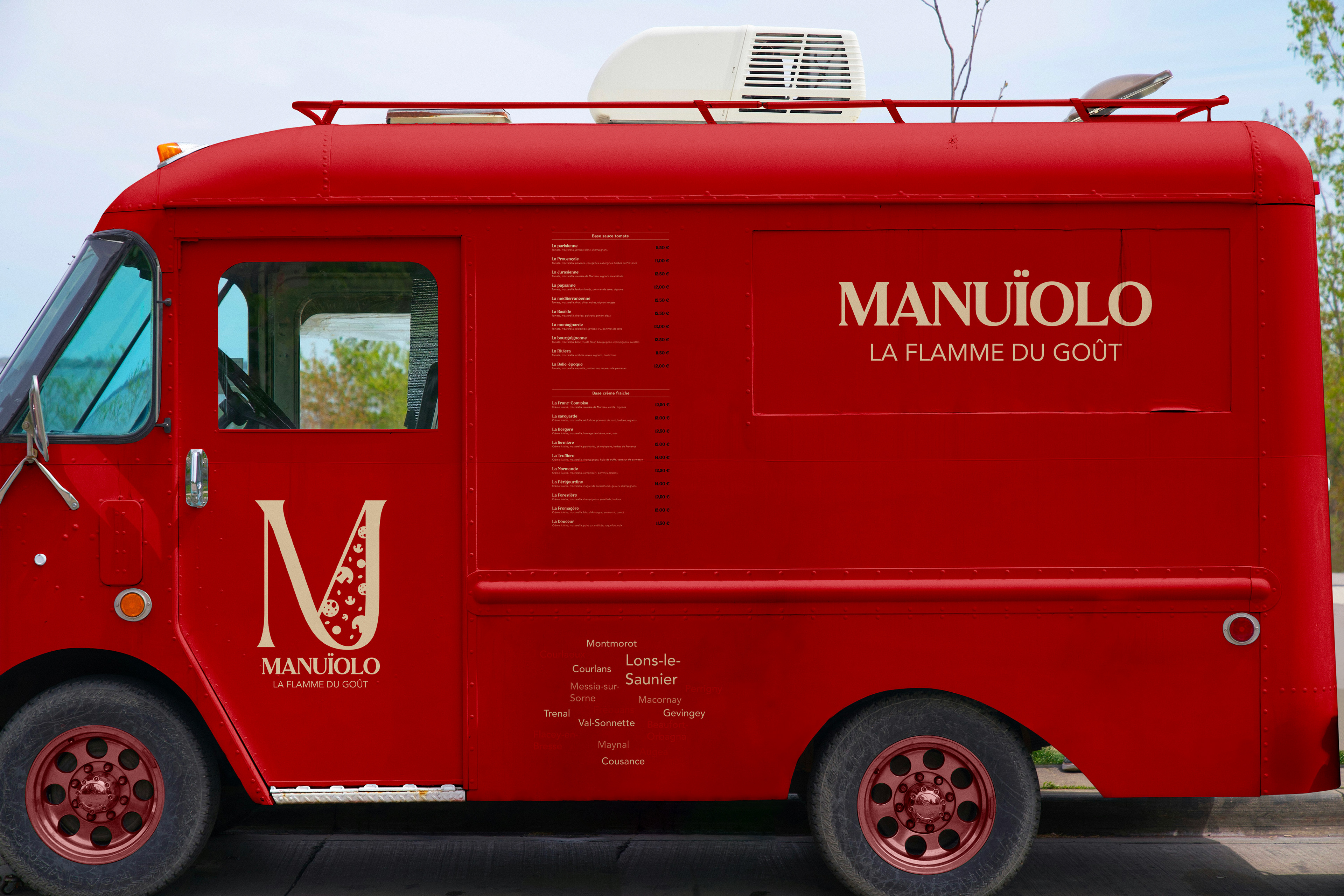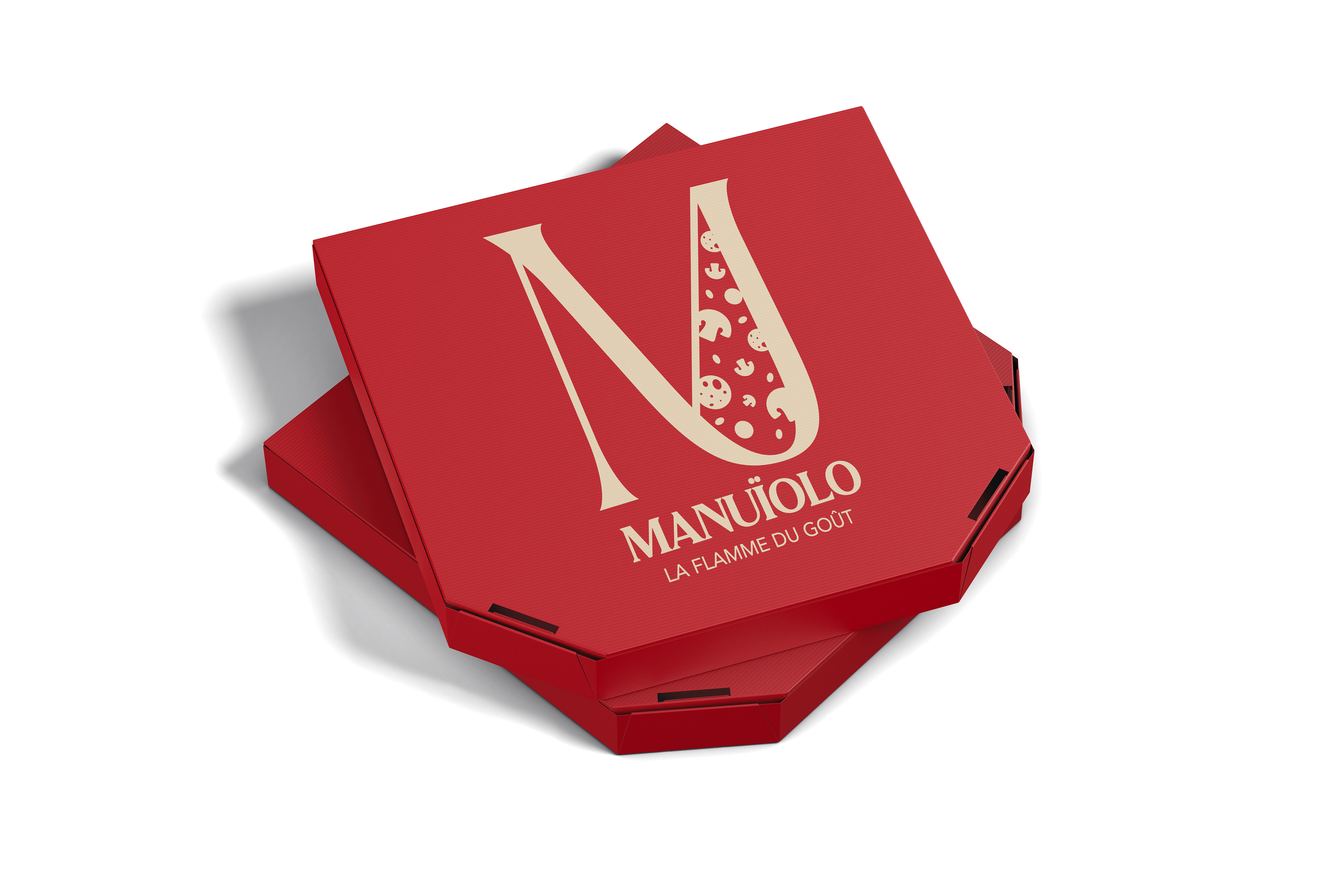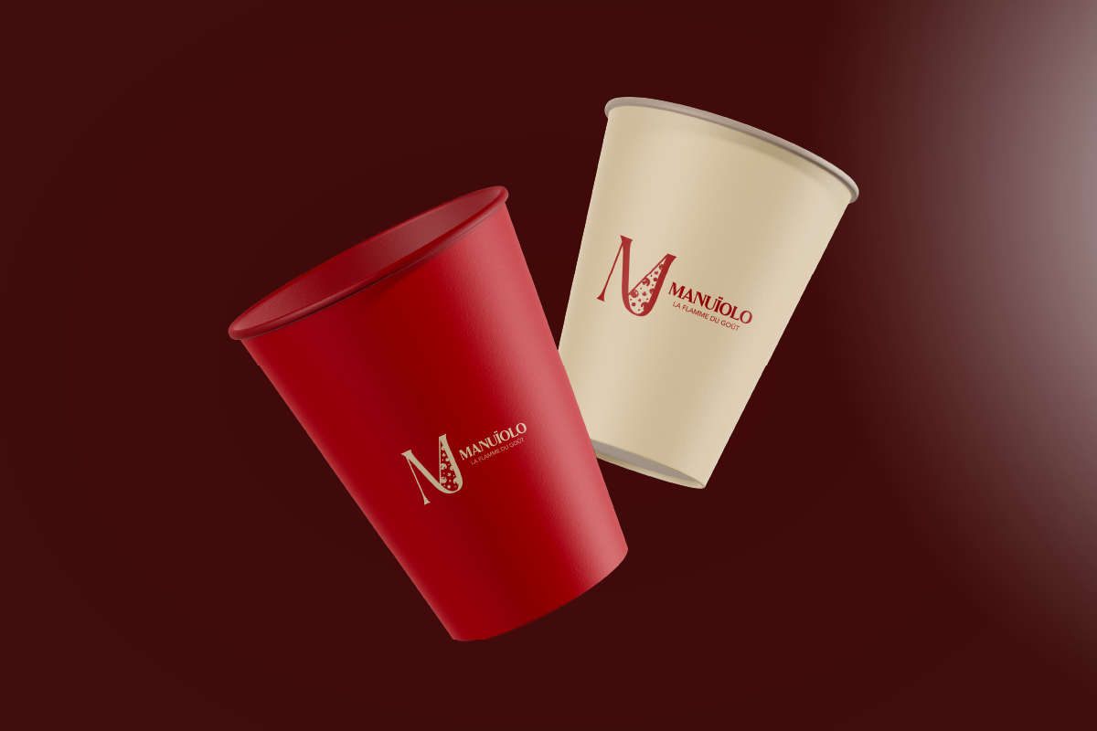 Création d'une identité visuelle chaleureuse et artisanale pour Manuiolo, un food truck spécialisé dans les pizzas au feu de bois. Le logo, inspiré de la flamme et de l'univers culinaire, s'accompagne d'une palette rouge-crème évoquant tradition et gourmandise. Les menus, gobelets et cartes de fidélité ont été conçus pour offrir une communication cohérente, accueillante et savoureuse, fidèle à l'esprit authentique de la marque.